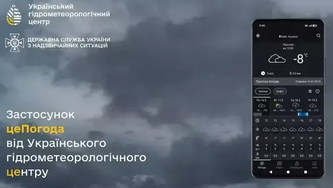 Український гідрометеорологічний центр запустив власний мобільний додаток «цеПогода» для надання офіційних прогнозів погоди та штормових попереджень.