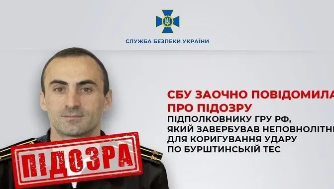 Служба безпеки України заочно висунула підозру підполковнику російської військової розвідки Марату Цевелеву, який відповідав за організацію ракетно-дронових атак Росії на Прикарпаття в січні 2026 року. Згідно з інформацією слідства, основними цілями цих атак були Бурштинська ТЕС, оборонні об’єкти та одна з ключових електропідстанцій західного регіону. Для коригування повітряних ударів Цевелев завербував 17-річну випускницю місцевого технікуму. Дівчина потрапила під увагу російських спецслужб, коли шукала можливості швидкого заробітку в Телеграм-каналах. За його вказівками, агентка провела розвідку поблизу енергетичних об’єктів, щоб оцінити їхній технічний стан після попередніх обстрілів. Після цього вона повинна була зафіксувати фото та відео одного з об’єктів ЗСУ і передати його геолокацію. Після збору інформації дівчина мала узагальнити дані та надіслати їх куратору через месенджер. Співробітники СБУ виявили діяльність агентки та задокументували її контакти з представником російської розвідки. На початку 2026 року її затримали під час фотографування військового об’єкта, і в неї вилучили смартфон із доказами. Слідство встановило, що Цевелев служить у 317-му морському центрі сил спеціальних операцій російського ГРУ, який розташований у тимчасово окупованому Севастополі. Цей підрозділ займається збором розвідданих для наведення ракетних і авіаційних ударів по території України. На основі зібраних доказів йому заочно висунули підозру за статтею «шпигунство». Обвинувальний акт щодо завербованої агентки вже передано до суду за статтею про державну зраду в умовах воєнного стану.