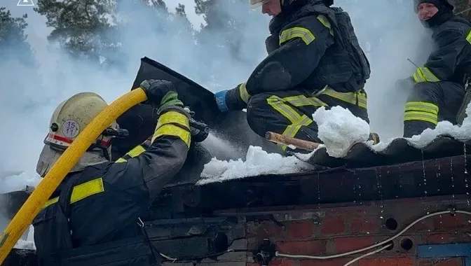 В Корюківський район Чернігівської області вночі через падіння російського БПЛА виникла пожежа житлового будинку та автомобіля. Підрозділи ДСНС оперативно ліквідували загоряння, і, за попередньою інформацією, постраждалих немає.